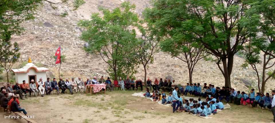 उक्त कार्यक्रम सभा अध्यक्ष बिधालय व्यवस्थापन समिति अध्यक्ष बिष्णुलाल पाण्डे प्रमुख अतिथि हिमाली गाउँपालिका अध्यक्ष गोबिन्द बहादुर मल्ल लगायत वडाका वडा अध्यक्ष अभिभावक, विद्यार्थी, शिक्षक जनप्रतिनिधि पाटी प्रतिनिधि लगायत सहभागिता कार्यक्रम समापन गरिएको बिधालय व्यवस्थापन समिति अध्यक्ष बिष्णुलाल पाण्डेले बताएका छन। सोही कार्यक्रम बिधालय प्रधानाध्यापक गोपानन्द पाण्डेले गर्नु भएको बिधालय परिवारले जनाएको छ।