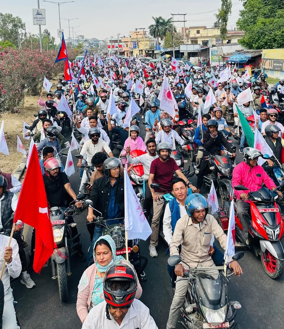 नेकपा एमाले पार्टी बाँके कार्यालयदेखी नेपालगन्ज उपमहानगरपालिकाका गणेशमान चोक, चारबाहिनि सदरलाईन, सेतुबिक चोक बसपार्क पुष्पलाल चोक हुँदै बिपी चोकमा समापन गरेकाे छ ।
