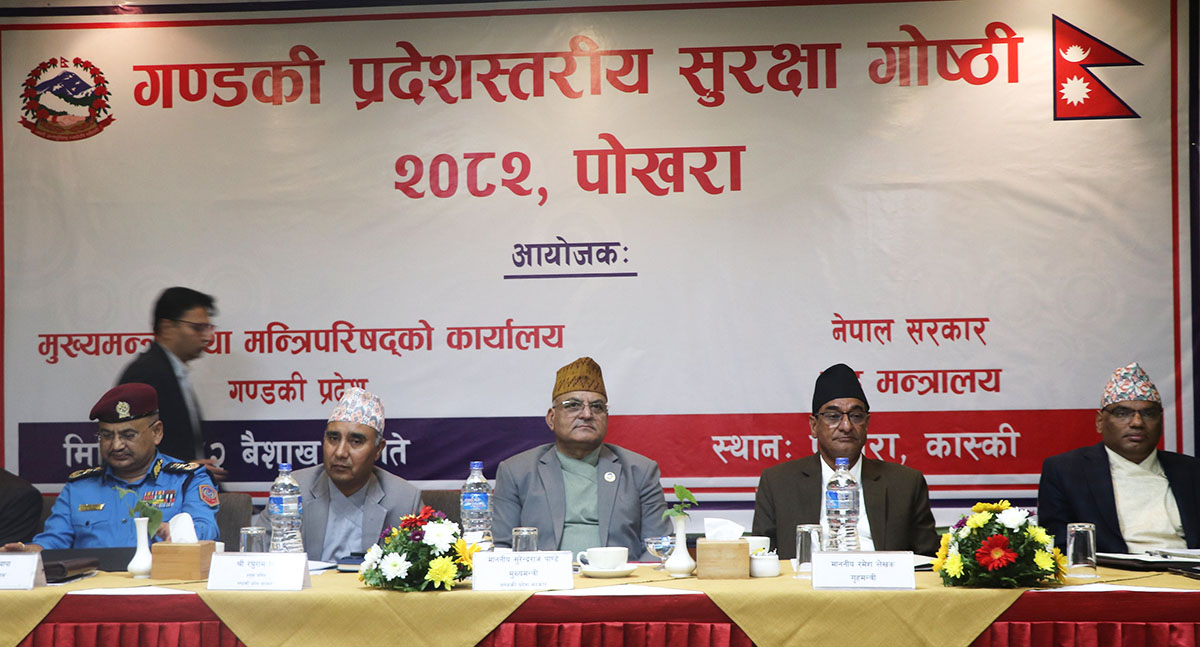 सुरक्षा गोष्ठीमा प्रदेशअन्तर्गत सबै जिल्लाका सुरक्षा समितिका पदाधिकारीहरूको उपस्थिति छ । मन्त्री लेखकले आजै सङ्घ मातहत रहेको आपतकालीन गोदामघर गण्डकी प्रदेश सरकारलाई हस्तान्तरण गर्नुभएको थियो । एक समारोहका बीच मन्त्री लेखकले प्रदेशका मुख्यमन्त्री पाण्डेलाई आपत्कालीन गोदामघर हस्तान्तरण गर्नुभएको हो । गण्डकी प्रदेशमा आपत्कालीन बन्दोबस्ती क्षमता अभिवृद्धि गर्न निर्माण गरिएको आपत्कालीन गोदामघरले सङ्कटका समयमा तत्काल प्रभावकारी बन्दोबस्ती सहायता सुनिश्चित गर्ने गृहमन्त्री लेखकले बताउनुभयो । गण्डकी प्रदेश प्राकृतिक जोखिमका दृष्टिबाट समेत जोखिमपूर्ण रहेको बताउँदै उहाँले गोदामघरले यहाँ हुने विभिन्न प्राकृतिक विपत्तिमा महत्वपूर्ण सहयोग पुग्ने विश्वास व्यक्त गर्नुभयो । विपद् न्यूनीकरण तथा व्यवस्थापनका लागि केन्द्र, प्रदेश र स्थानीय तहबीचको सहकार्य आवश्यक भएको उहाँले बताउनुभयो । मुख्यमन्त्री पाण्डेले गोदामघर हस्तान्तरणसँगै विपद् उद्धार कार्यलाई एकद्वार प्रणालीमार्फत गर्न सहयोग पुग्ने बताउनुभयो । गृहसचिव गोकर्णमणि दुवाडीले आपत्कालीन अवस्थामा खोज तथा उद्धारका लागि गोदामघर सहयोगी बन्ने बताउँदै सबै स्थानीय पालिकामा गोदामघर हुनु आवश्यक भएको धारणा राख्नु गर्नुभयो ।