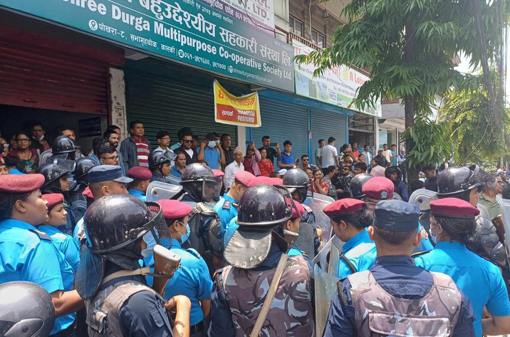 पोखरा जेष्ठ २३। पोखराका सहकारी महिला सदस्य पुष्पकमल दाहाल प्रचण्डलाई कालो झण्डा र ब्यानर देख्छन्...