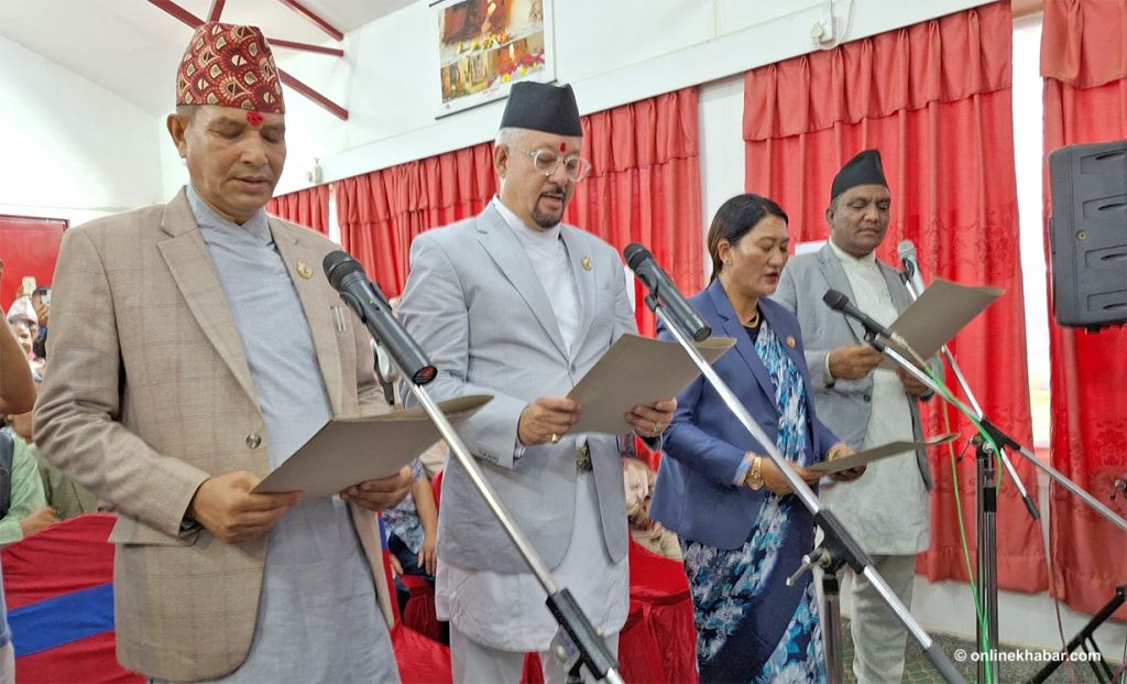 सुर्खेत साउन २०। कर्णाली प्रदेश सरकारका चार नवनियुक्त मन्त्रीले पद तथा गोपनीयताको शपथ लिएका...