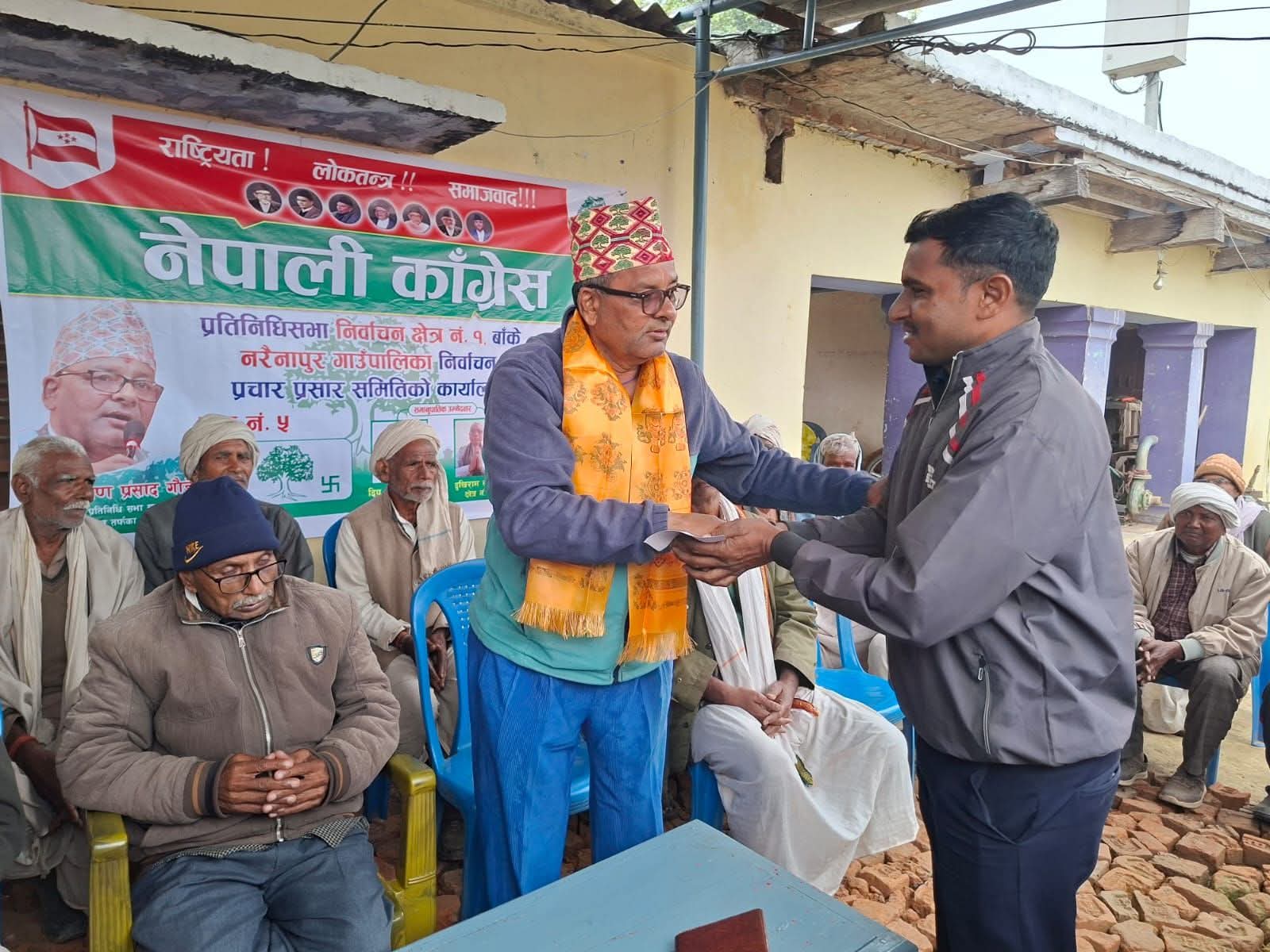 नेपालगन्ज माघ २० । नेपाली काँग्रेस बाँके क्षेत्र नम्बर १ अन्तर्गत रहेको नरैनापुर गाउँपालिकाका...