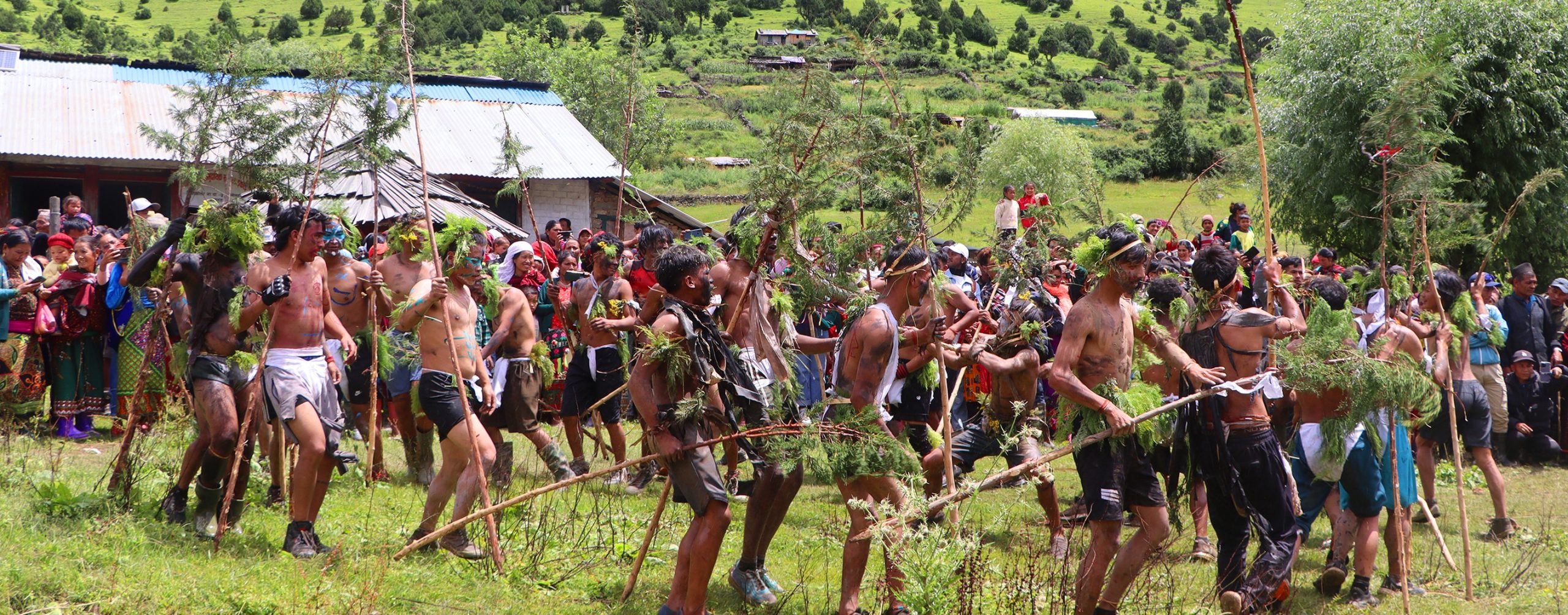 ढोरपाटन (बागलुङ), ४ भदौ : अर्ध नग्न शरीर, मोसोले छोपिएको अनुहार र छाति, कम्मरमा सेतो कपडा बाँधेर...