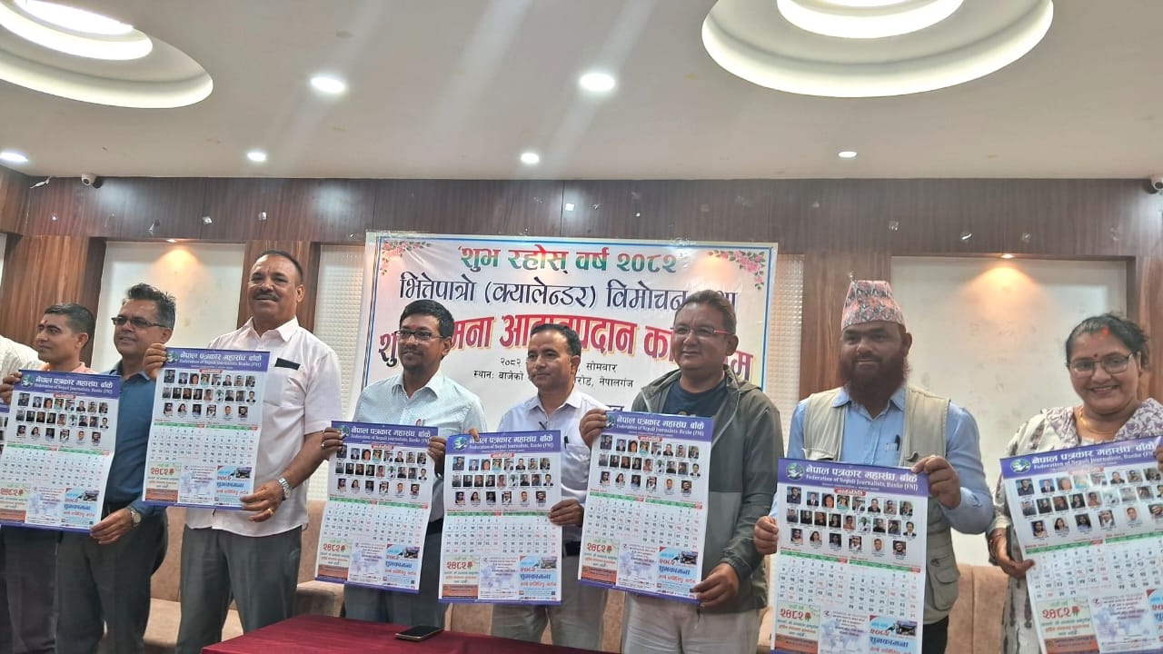 नेपालगञ्ज । नेपाल पत्रकार महासंघ बाँकेले प्रकाशन गरेको नयाँ बर्ष २०८२ सालको भित्तेपात्रो (क्यालेण्डर)...