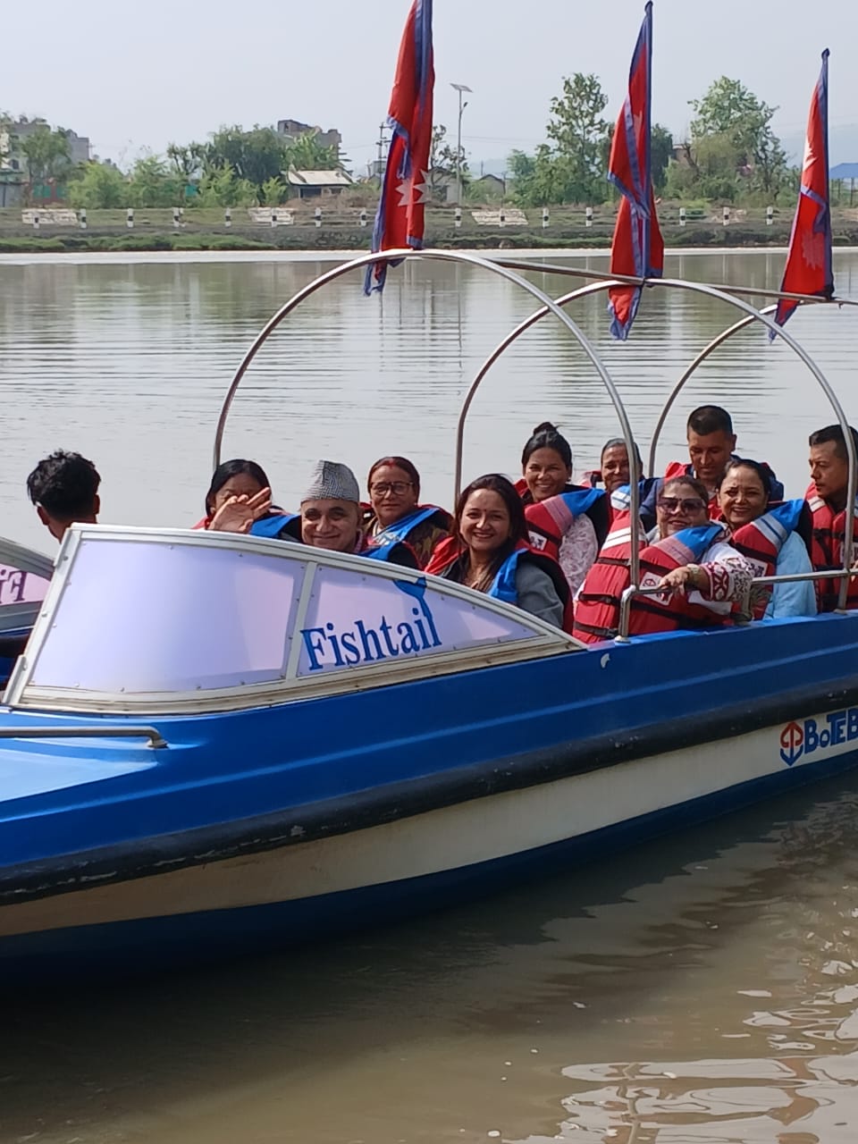 सुर्खेत। सुर्खेतको वीरेन्द्रनगरमा अगाडि बुलबुले तालमा सञ्चालित मोटरबोटको एक कार्यक्रमका बीच...