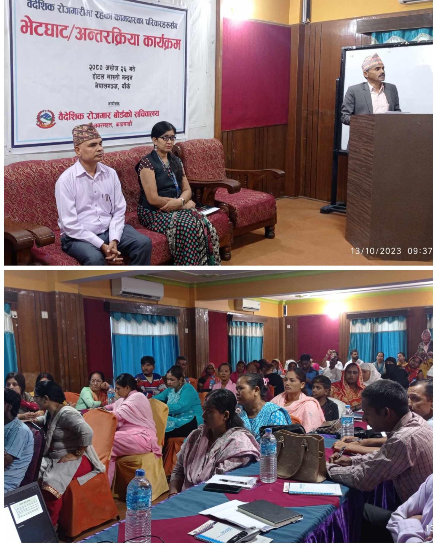 नेपालगञ्ज, असोज २६ । बैदेशिक रोजगार बोर्डको सचिवालयले बैदेशिक रोजगारमा रहेका कामदारका परिवारहरुसंग...