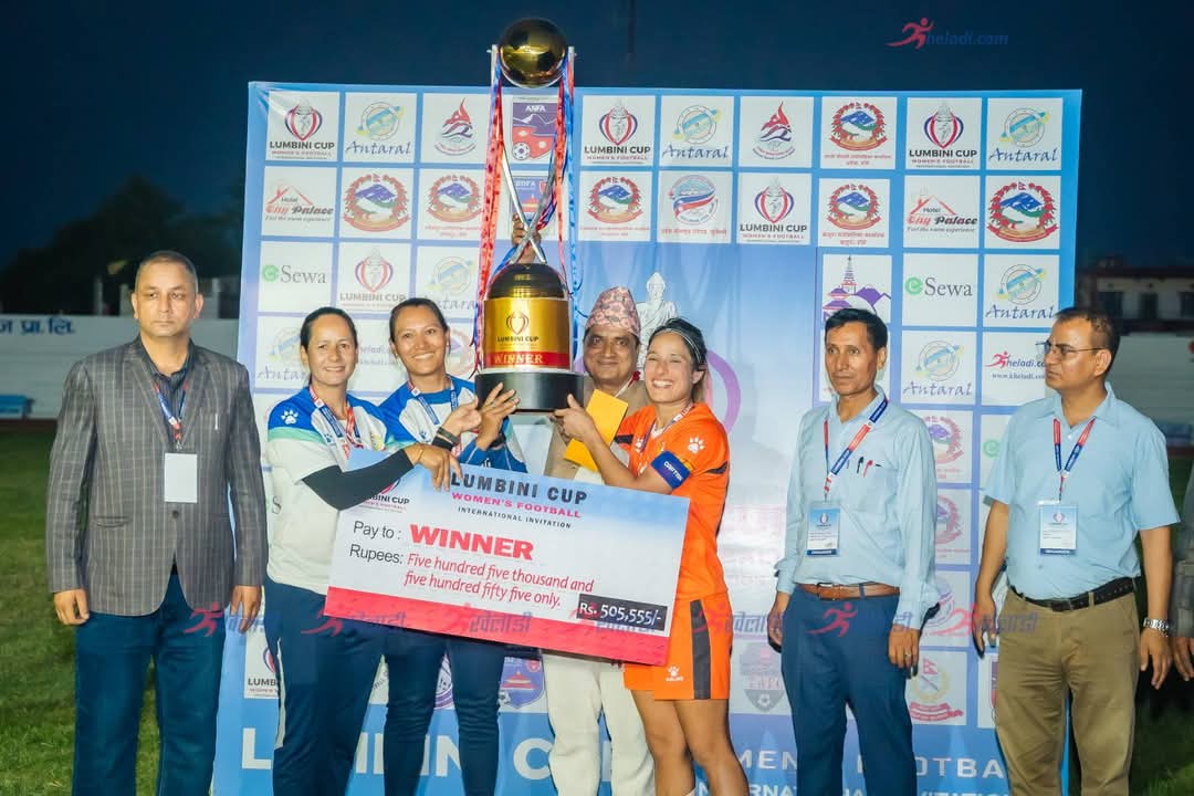 नेपालगञ्ज, १२ वैशाखः लुम्बिनी कप अन्तरराष्ट्रिय आमन्त्रण महिला फुटबल प्रतियोगिताको फाइनल...